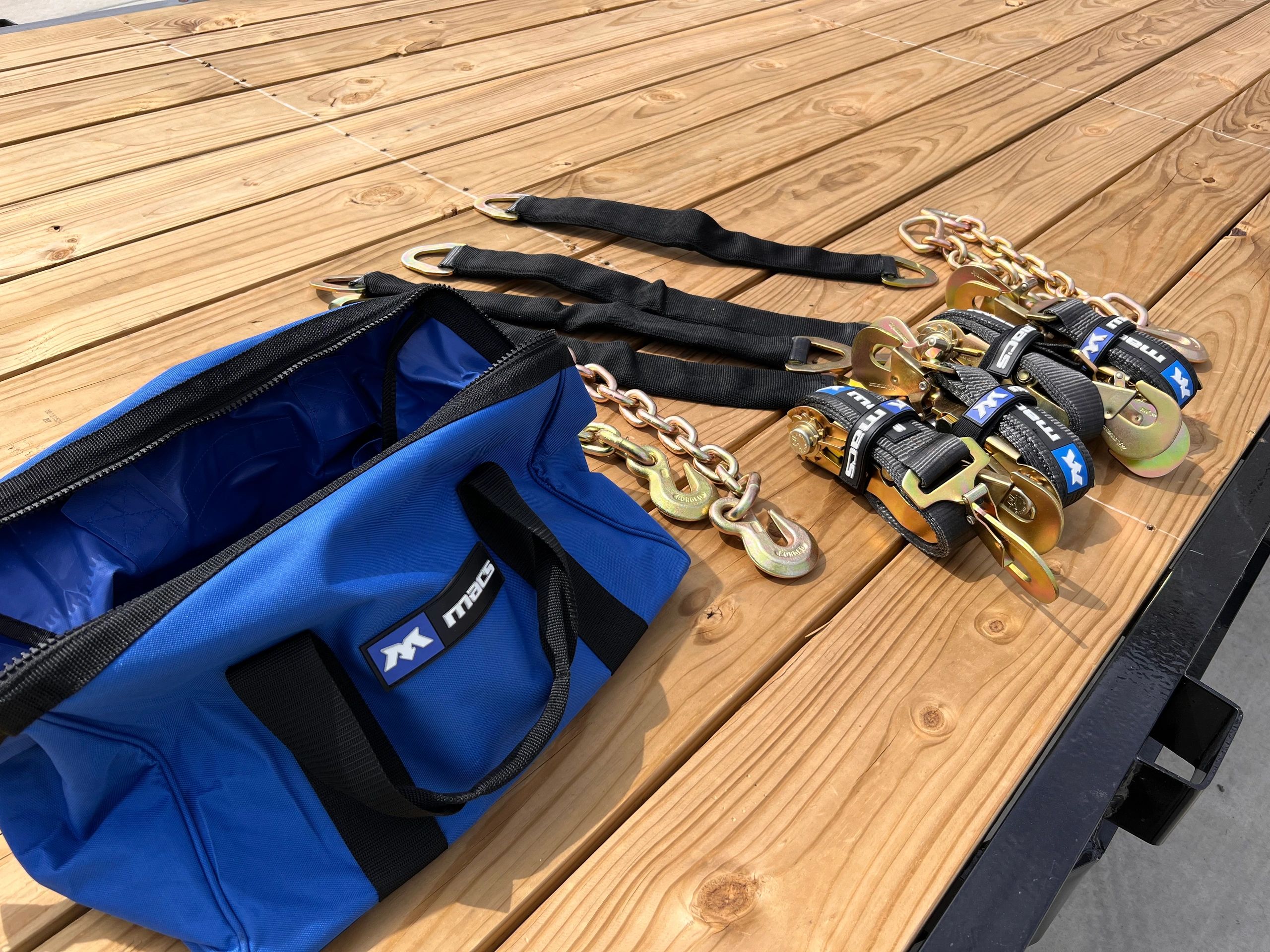 Our trailer rental rates include a set of 4 Mac’s Tie Downs, a pair of chains and binders, or 4 ratchet straps with every rental.